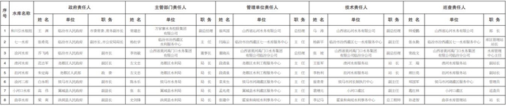 临汾市2023年水库大坝安全管理(度汛)责任人名单公示