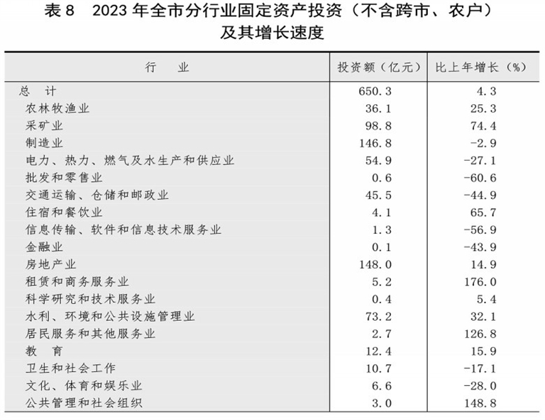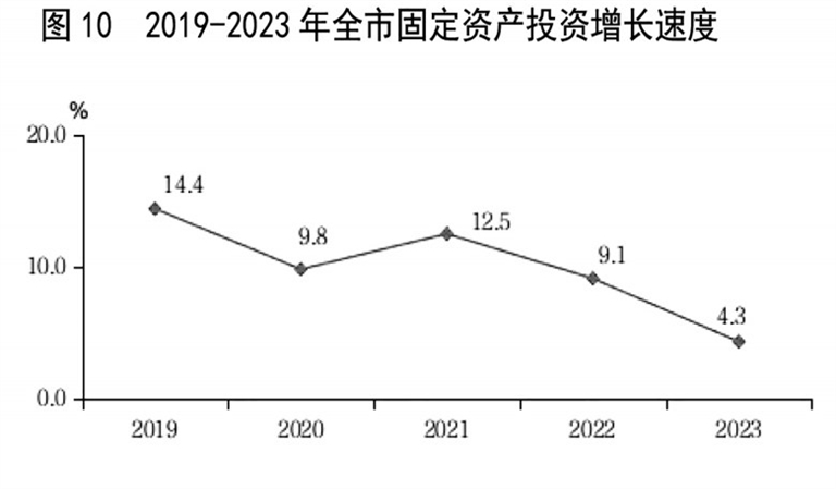 全年全市固定资产投资(不含跨市、农户)比上年增长4.3%。