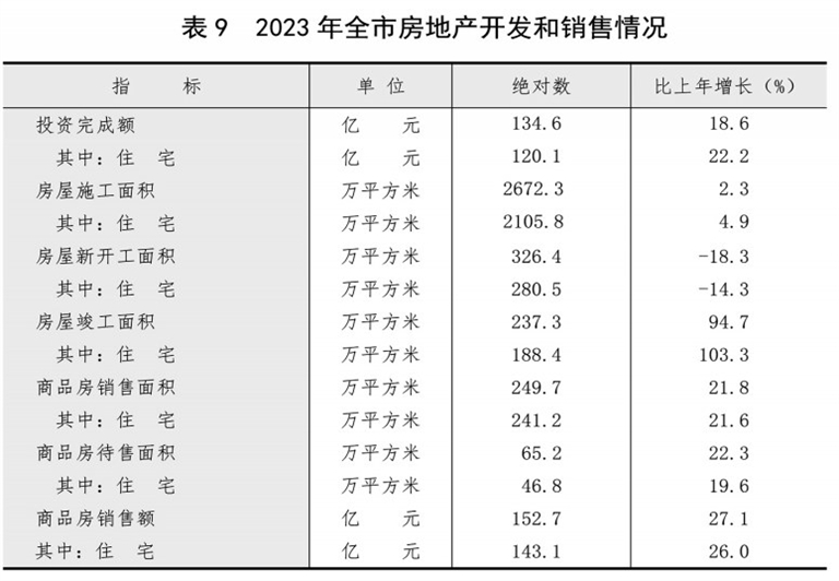 全年全市房地产开发投资134.6亿元,增长18.6%。其中,住宅投资120.1亿元,增长22.2%;商业营业用房投资4.3亿元,下降13.4%。