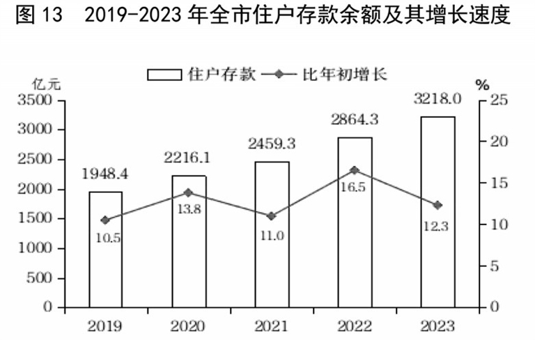 年末住户存款3218.0亿元,比年初增长12.3%。