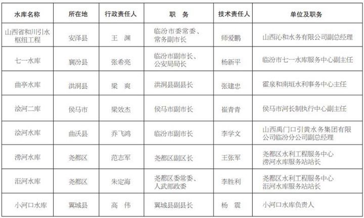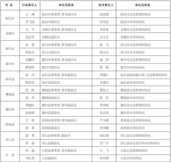 临汾市2024年重点防洪城市和县城防汛责任人名单