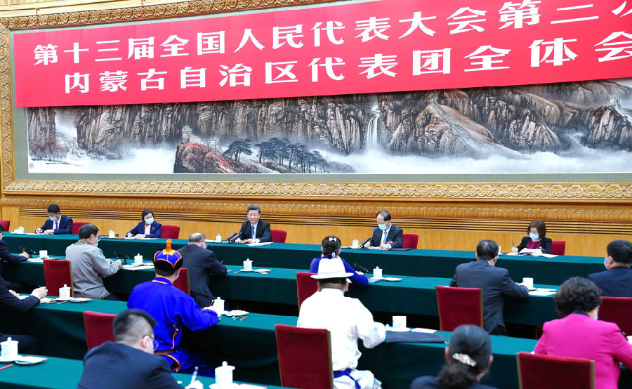 全国人大代表、锡林郭勒盟盟长霍照良告诉总书记,他们坚持生态优先、绿色发展,将全盟60%以上区域划入生态保护红线,不再在草原新上矿山开发项目。习近平表示肯定:“留在那,子孙后代可以用。”