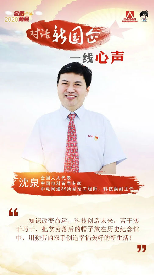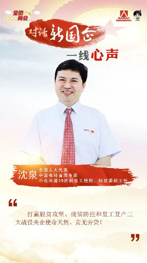 今天为您推出“对话新国企·一线心声”融媒体访谈第二场,邀请全国人大代表、中国电科首席专家、中电网通39所副总工程师 沈泉做客中青网,围绕央企疫情防控和扶贫攻坚等话题与网友进行了交流。