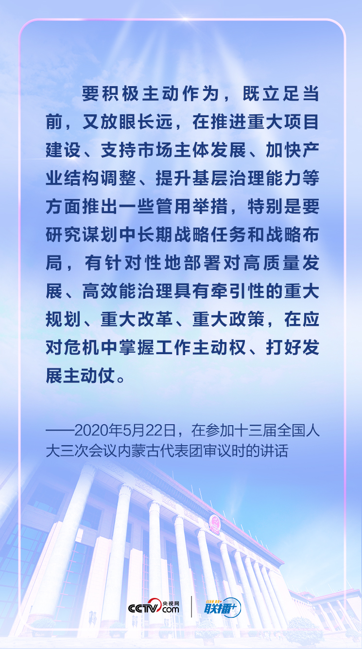 在这次特殊背景下召开的全国两会上,习近平总书记看望了参加政协会议的经济界委员,并来到内蒙古、湖北、解放军和武警部队3个代表团参加审议,同代表委员们深入交流、共商国是。