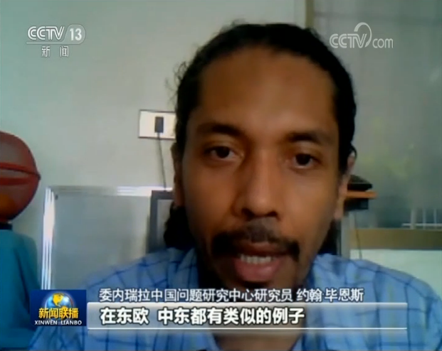 委内瑞拉中国问题研究中心研究员 约翰·毕恩斯:毫无疑问,世界上只有一个中国,在香港发生的暴力活动,是与外部势力有勾结的。在东欧、中东都有类似的例子,导致国家动荡不安,中国所做的正是为了保护国家的安全稳定。