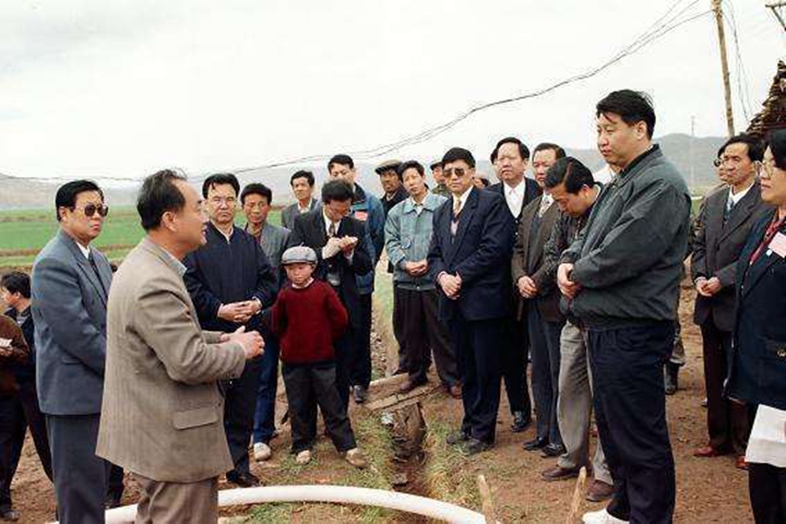 1997年4月,习近平在宁夏隆德县考察,了解抽水灌溉情况。