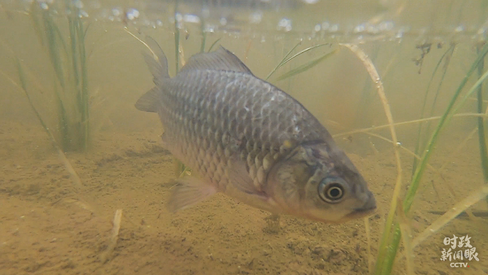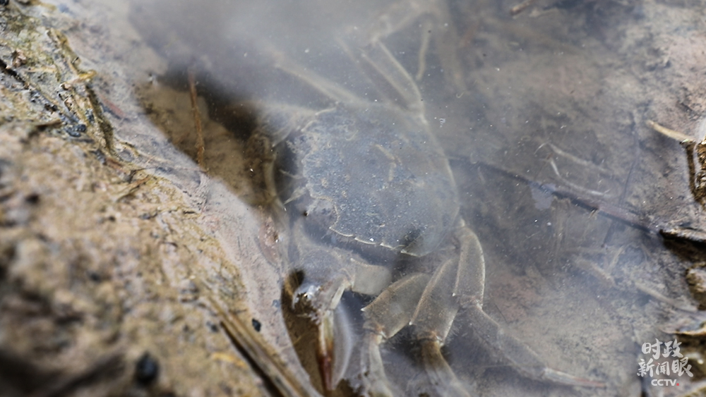△鱼虾蟹在稻田里游动,既松动泥土帮助水稻生长,又能提供肥料。(总台央视记者范凯拍摄)