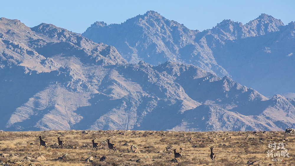 △岩羊是国家二级保护动物,因攀登本领高超被誉为“峭壁精灵”。《时政新闻眼》恰巧捕捉到它们跳跃的身影。(总台央视记者陶鹏飞拍摄)