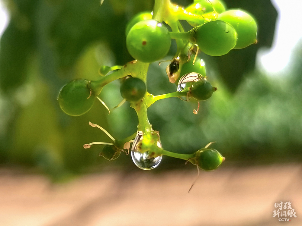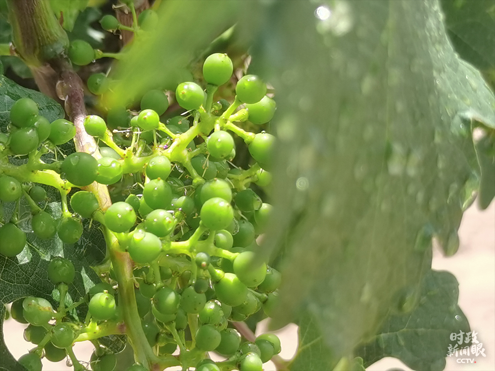 △当地的葡萄还未成熟,采摘通常集中在9、10月份。(总台央视记者杨波拍摄)