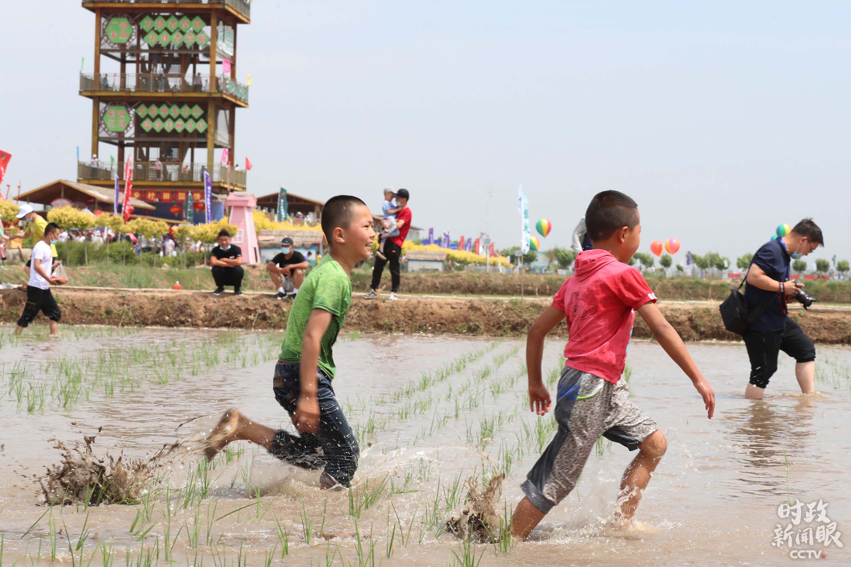 △稻渔空间举办亲子活动,游客体验捉鱼乐趣。