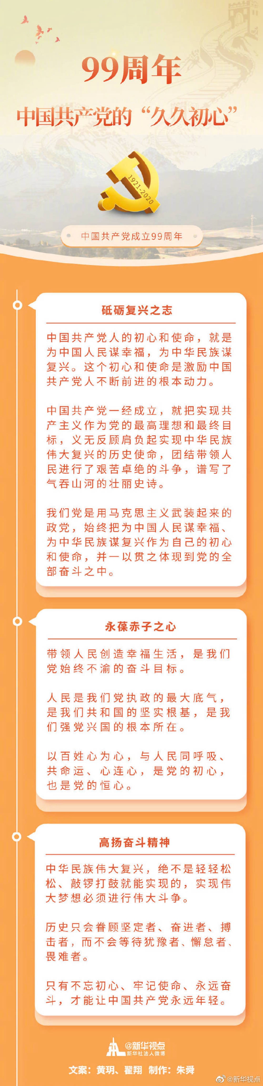 新华社北京6月30日电 题:砥砺复兴之志 永葆赤子之心——写在中国共产党成立99周年之际