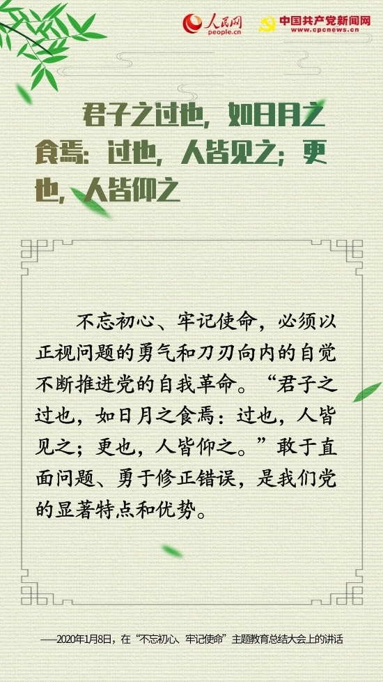 以古为镜、旁征博引,习近平总书记多次在论述中国共产党人的初心使命时引用古典名句,并赋予它们鲜活的当代价值与意义,意境深远、引人入胜。