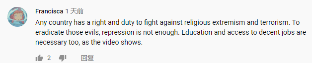 “任何国家都有权利和义务打击宗教极端主义和恐怖主义。要根除这些邪恶……教育和获得体面工作的机会也是必要的。”近日,一名海外网友Francisca在看完中央广播电视总台旗下CGTN播出的《巍巍天山——中国新疆反恐记忆》纪录片后这样评价。