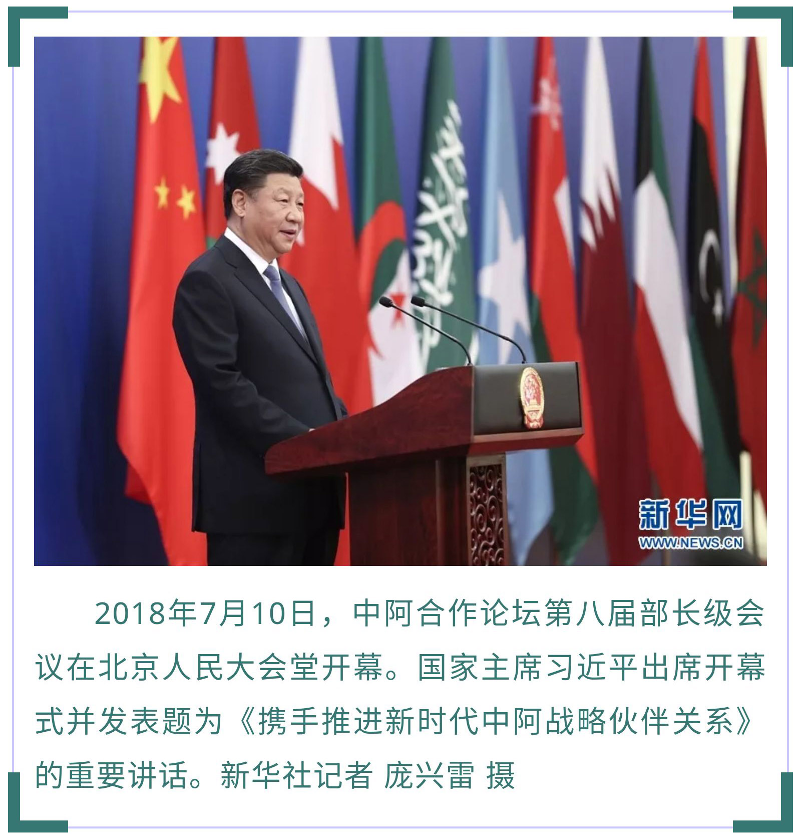 “2018年,我在中阿合作论坛第八届部长级会议开幕式上宣布中阿双方建立战略伙伴关系,倡议打造中阿命运共同体,共同推动构建人类命运共同体,得到阿拉伯国家热情响应。”在贺信中,习近平深情回忆。