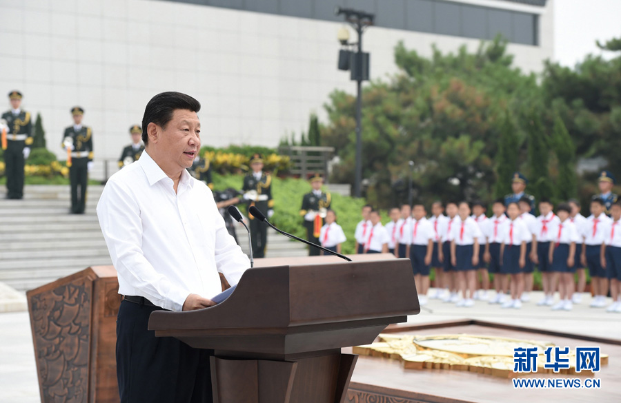 2014年7月7日,首都各界在中国人民抗日战争纪念馆隆重集会,纪念全民族抗战爆发77周年。习近平出席纪念仪式并发表重要讲话。新华社记者 马占成 摄