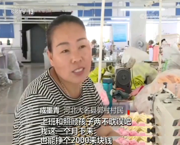 对于企业,最大的好处是房租大幅降低;对于村民,最大的好处莫过于在家门口就能打工挣钱了。成墨青是大名县郭村的贫困户,因为丈夫去世,婆婆瘫痪,所以她独自抚养着两个孩子,没法外出打工,现在她在家门口的微工厂找了份工作。