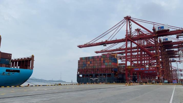 7月,宁波舟山港,一艘艘货轮进出繁忙,行驶得又稳又快。又稳又快的还有中国对外开放的脚步。