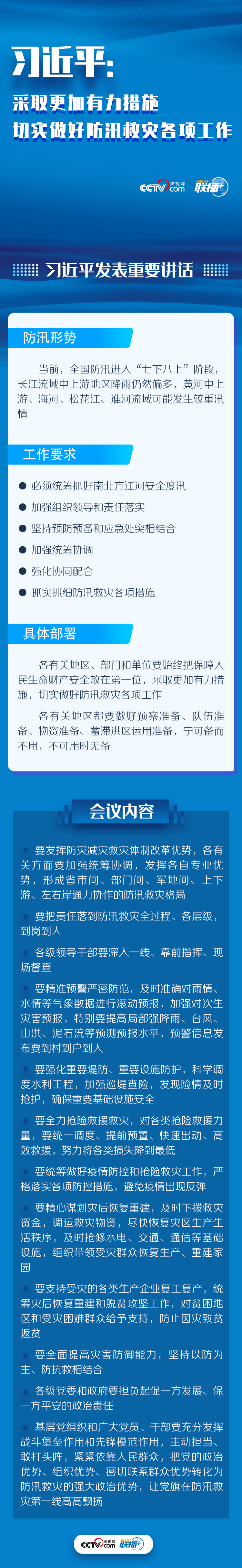 7月17日,习近平总书记主持中共中央政治局常务委员会会议,分析了当前防汛形势,并对防汛救灾工作作出具体部署。央视网《联播+》特进行梳理,共同凝聚抗洪救灾的强大力量。