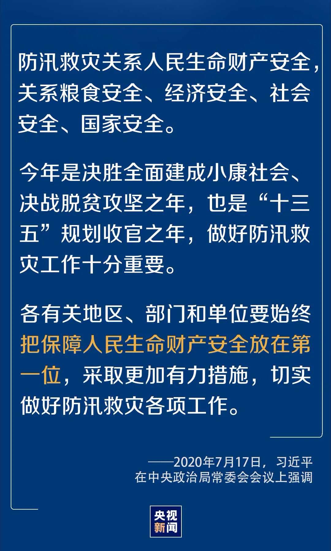 习近平要求,各地区和有关部门要坚持人民至上、生命至上,统筹做好疫情防控和防汛救灾工作,坚决落实责任制,坚持预防预备和应急处突相结合,加强汛情监测,及时排查风险隐患,有力组织抢险救灾,妥善安置受灾群众,维护好生产生活秩序,切实把确保人民生命安全放在第一位落到实处。