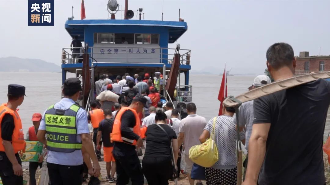 △江西省九江市彭泽县棉船镇居民在有序撤离。