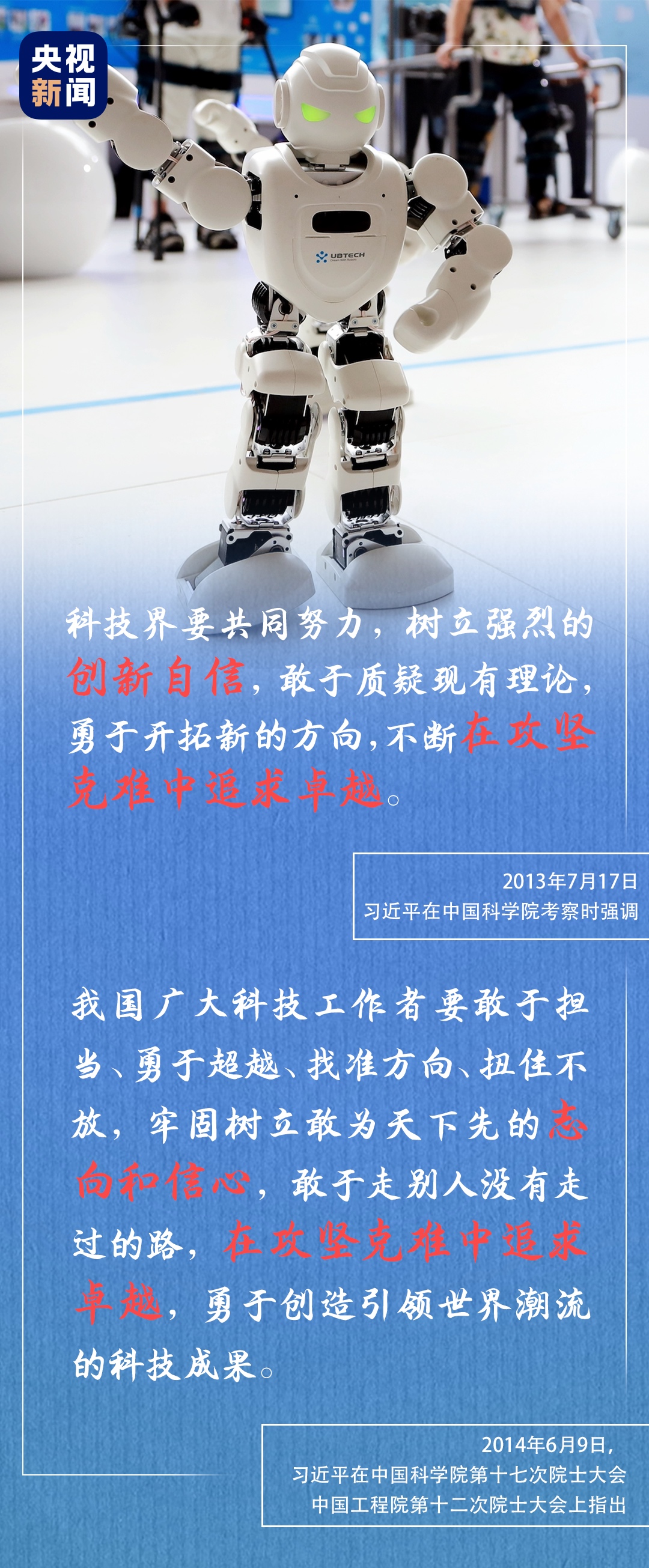2013年7月17日,习近平总书记在考察中国科学院时发表重要讲话,强调科技界要共同努力,树立强烈的创新自信,敢于质疑现有理论,勇于开拓新的方向,不断在攻坚克难中追求卓越。