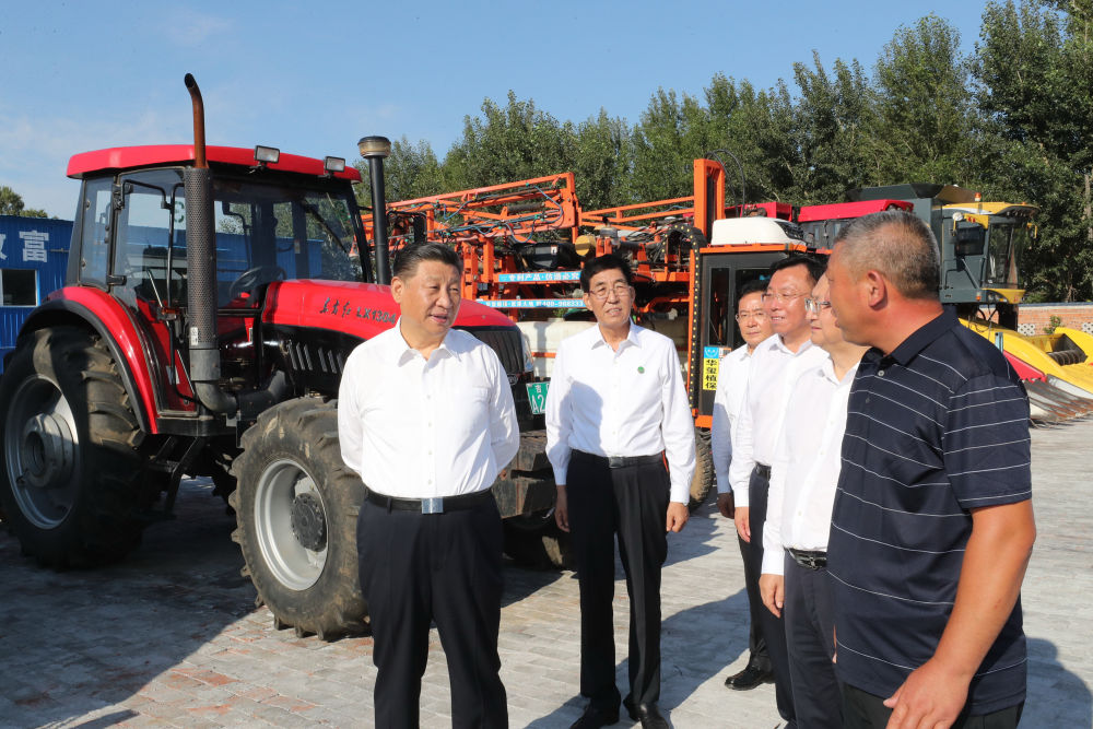 2020年7月22日,习近平来到吉林省四平市梨树县国家百万亩绿色食品原料(玉米)标准化生产基地核心示范区、卢伟农机农民专业合作社考察。新华社记者 鞠鹏 摄
