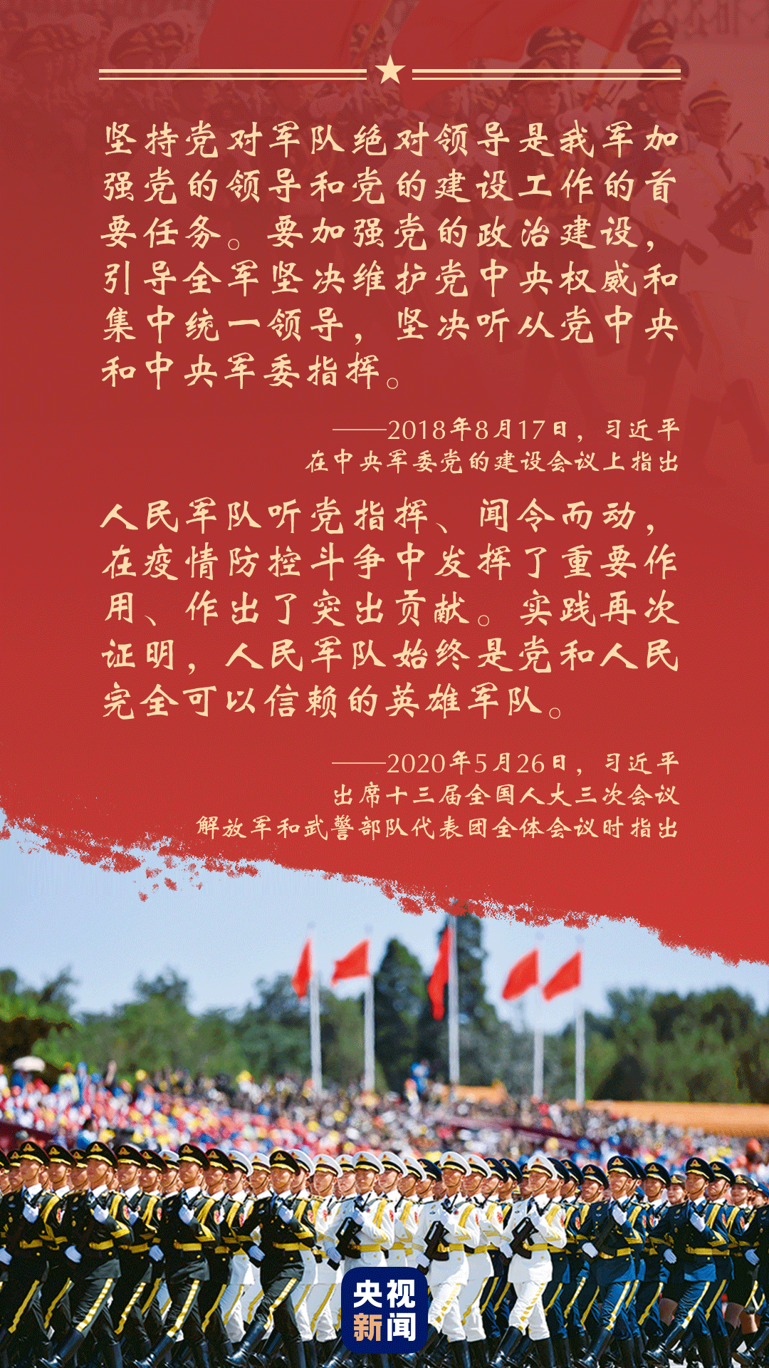 建军93年来,人民军队始终与党同心同德、步调一致,无论面临什么样的风险、诱惑和干扰,都矢志不渝听党话跟党走,以实际行动彰显对党的绝对忠诚。