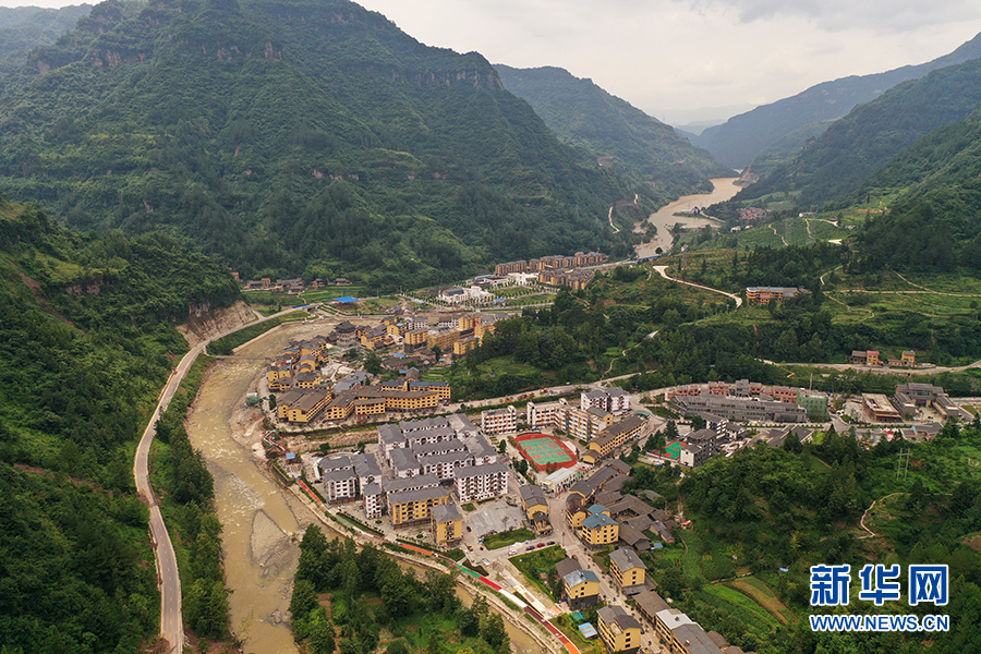 图为今年7月重庆市石柱县中益乡航拍图片,场镇面貌焕然一新。