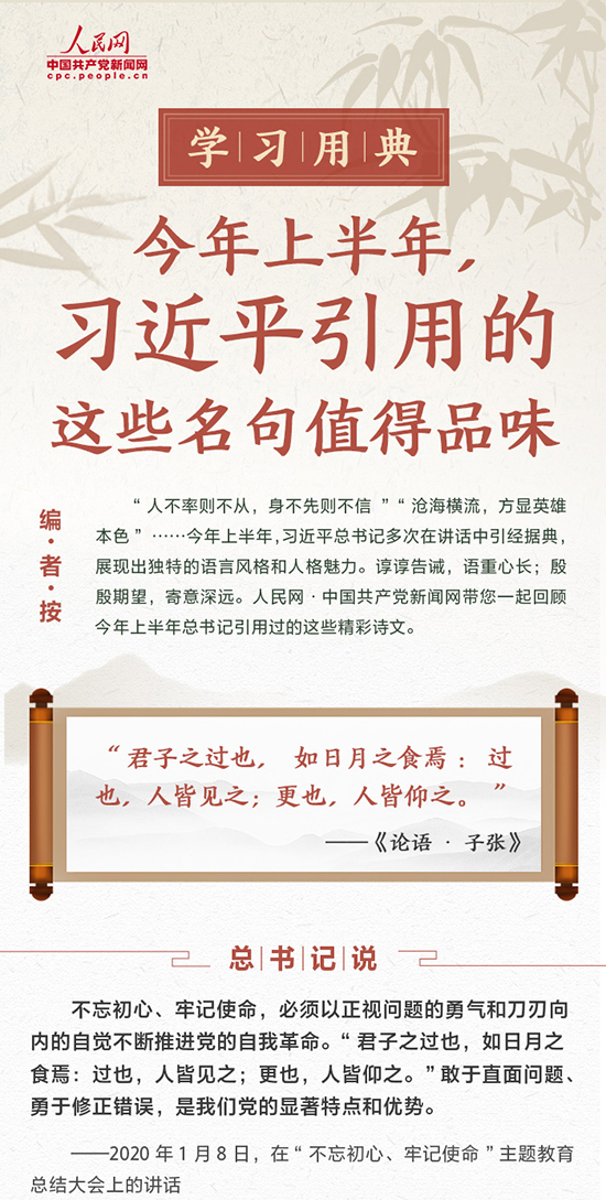 今天让我们关注总书记上半年讲话中引用的名句。>>>点击查看名句解读