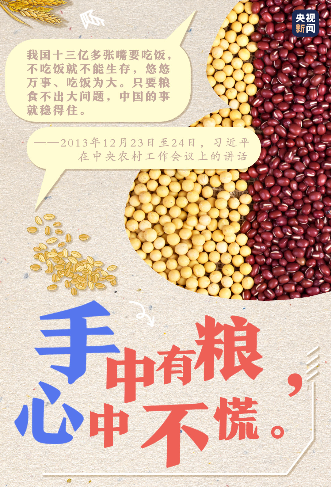 今年7月22日,心系粮食生产和安全的习近平再次踏上吉林这片黑土地,强调要把保障粮食安全放在突出位置,毫不放松抓好粮食生产。近日,习近平再次对遏制“舌尖上的浪费”作出指示,要求在全社会营造浪费可耻、节约为荣的氛围。