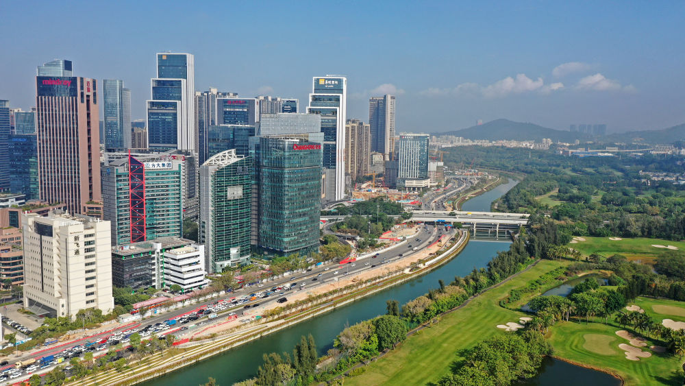 深圳大沙河两岸,高科技企业云集,生态环境优美(无人机照片,2020年1月7日摄)。