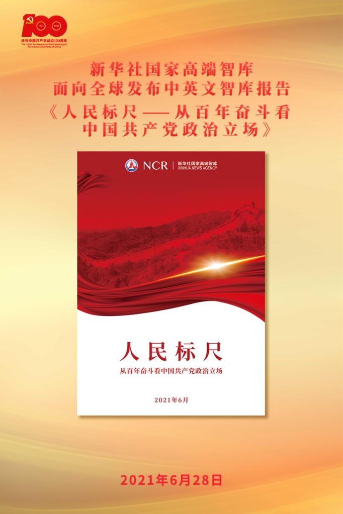 新华社北京6月28日电(记者孙少龙)新华社国家高端智库28日面向全球发布中英文智库报告《人民标尺——从百年奋斗看中国共产党政治立场》。