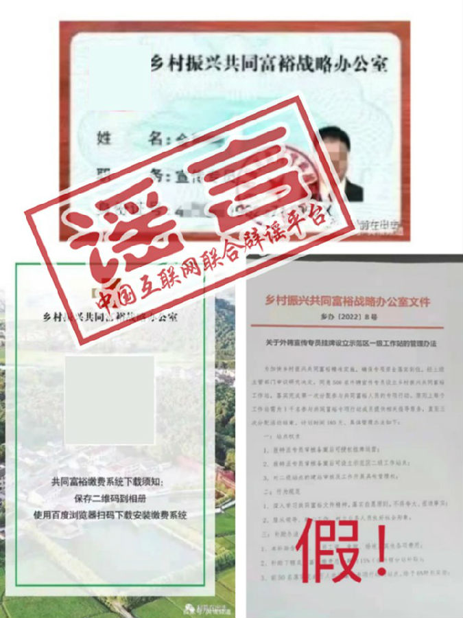 打着国家政策、政府支持的幌子,山寨“乡村振兴共同富裕战略办公室”机构,伪造红头文件和工作证,让常人难以分辨。