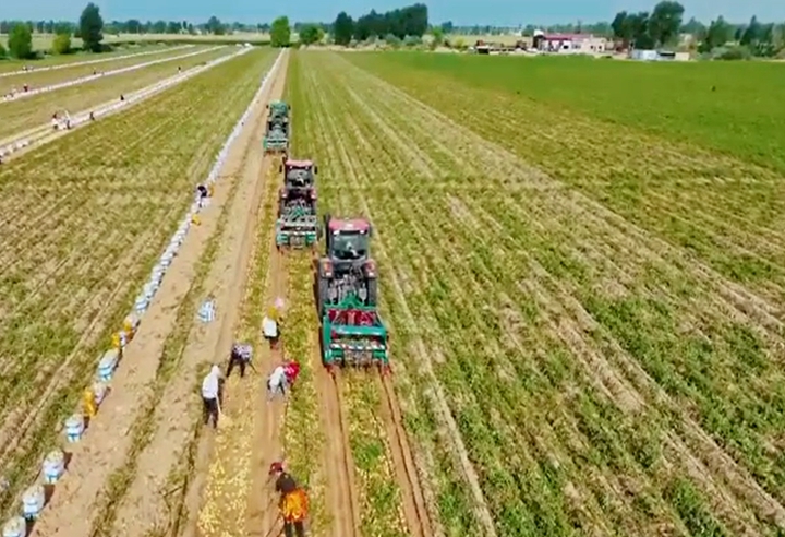 △近日,陕西榆林的农民们正在紧锣密鼓地进行着秋收工作。