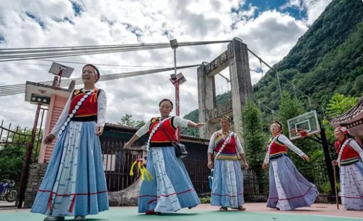 △云南省怒江州福贡县石月亮乡拉玛底村村民自发组成的“奋进合唱团”在村委会排练节目。
