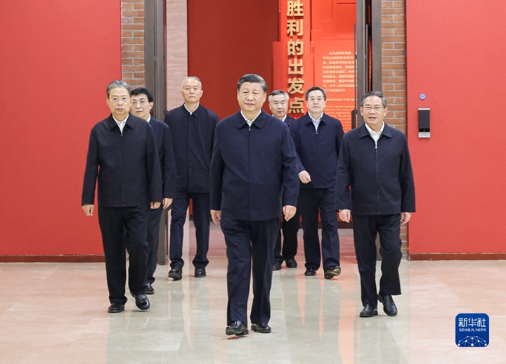 党的二十大闭幕不到一周,10月27日,习近平总书记带领新当选的二十届中共中央政治局常委来到了延安,瞻仰革命圣地,缅怀老一辈革命家的丰功伟绩,宣示新一届中央领导集体赓续红色血脉、传承奋斗精神,在新的赶考之路上向历史和人民交出新的优异答卷的坚定信念。