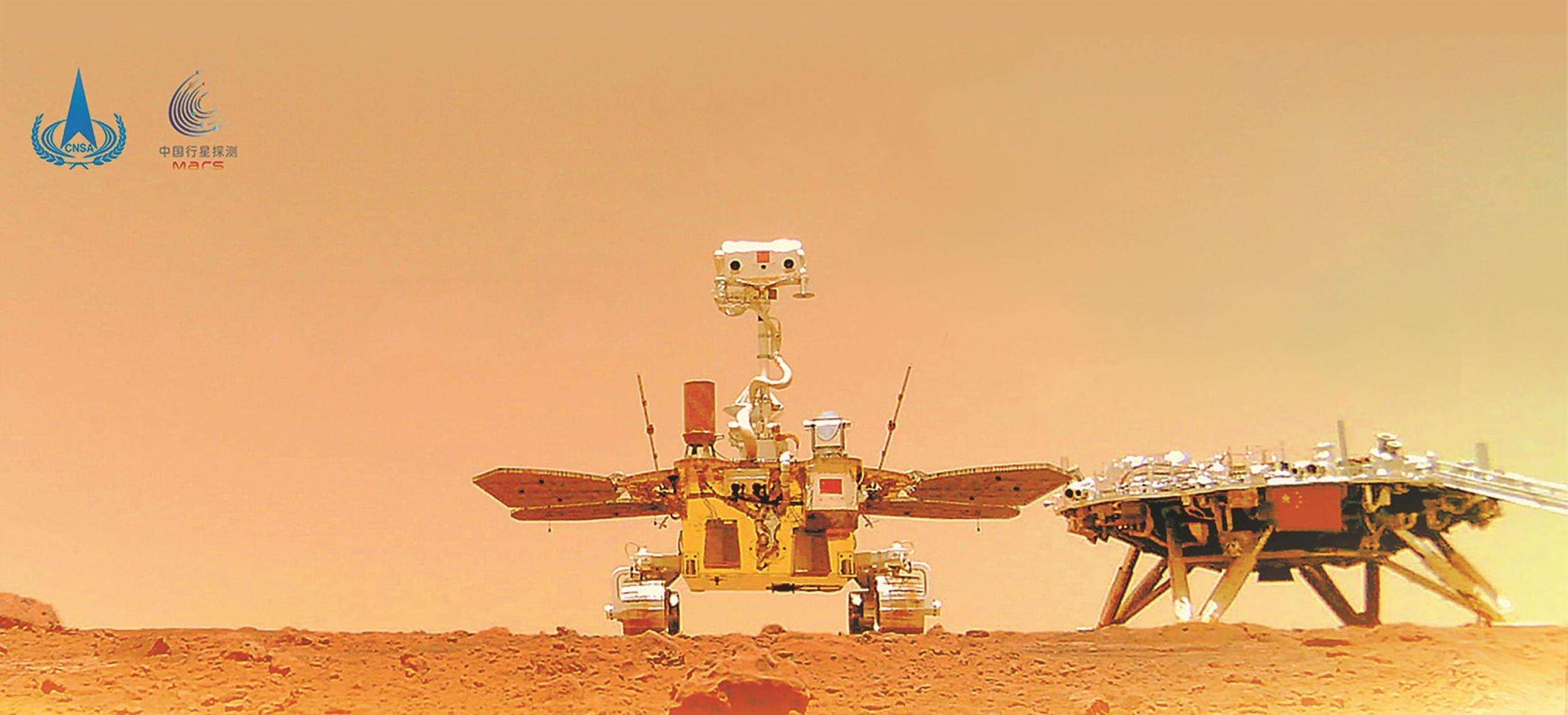 中国首次火星探测天问一号任务“祝融号”火星车与着陆器合影。国家航天局供图