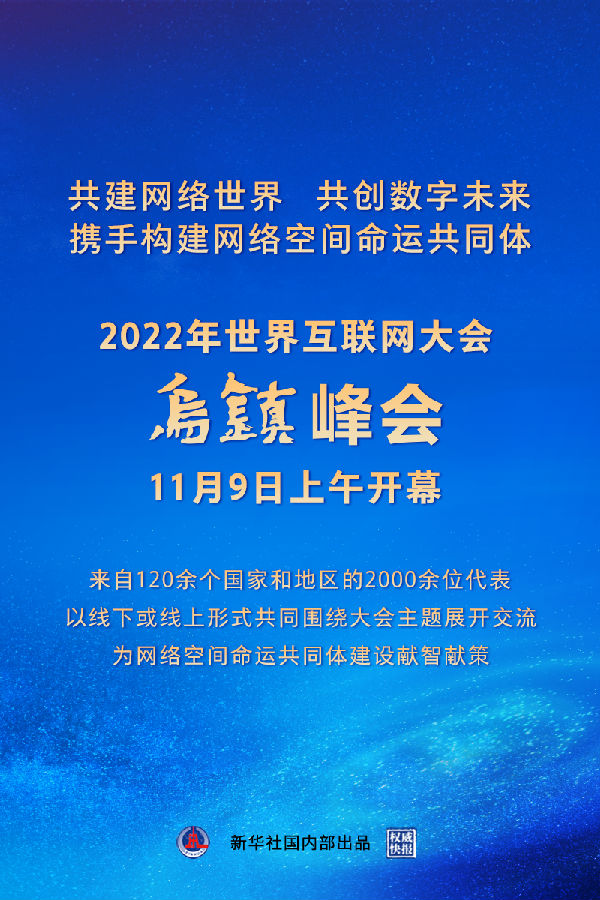 以“共建网络世界 共创数字未来——携手构建网络空间命运共同体”为主题的2022年世界互联网大会乌镇峰会11月9日上午开幕。