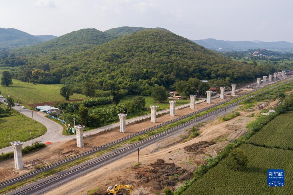 这是位于泰国呵叻的中泰铁路建设现场(2022年9月7日摄,无人机照片)。新华社记者 林昊 摄
