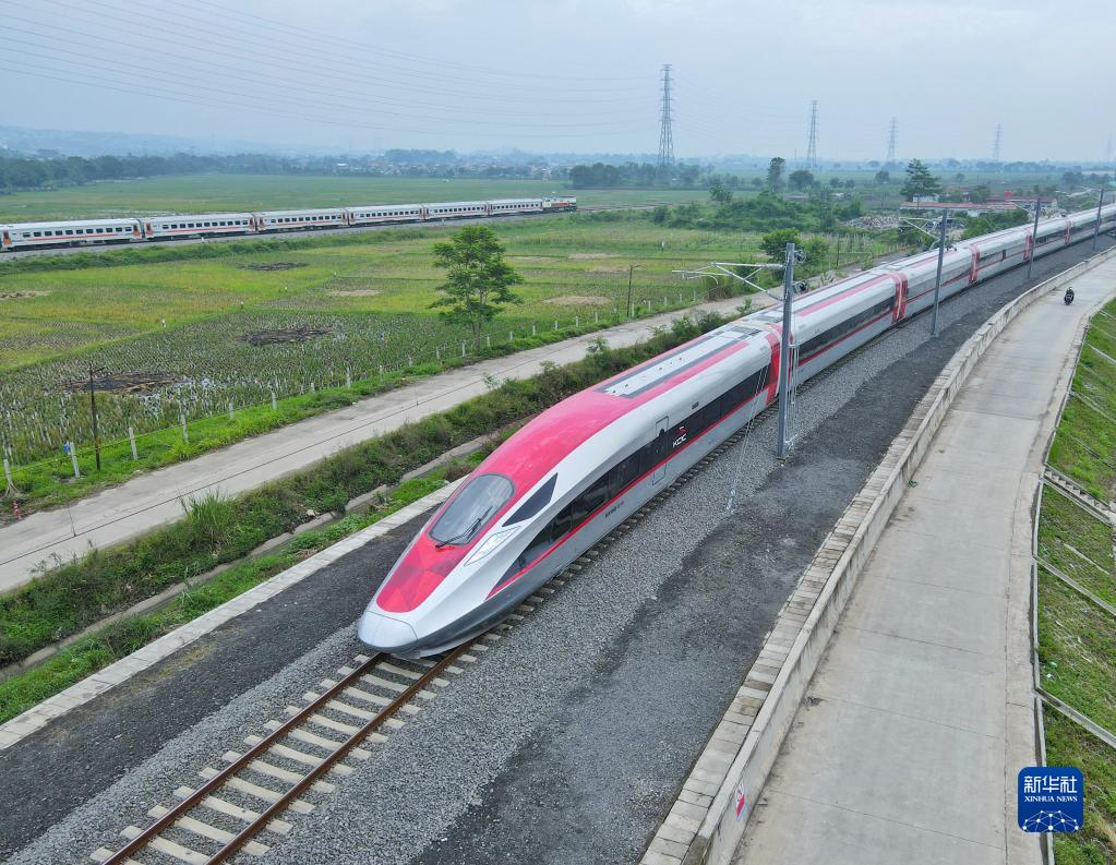 11月9日,印尼万隆德卡鲁尔车站。一辆带有宝石红涂色的高铁列车缓缓启动,标志着雅万高铁试验段接触网热滑试验全面展开。雅万高铁项目自2016年正式启动以来,在两国元首关心下顺利推进,已成为共建“一带一路”的标志性项目。项目建成后,雅加达到万隆的旅行时间将由现在的3个多小时缩短至40分钟。