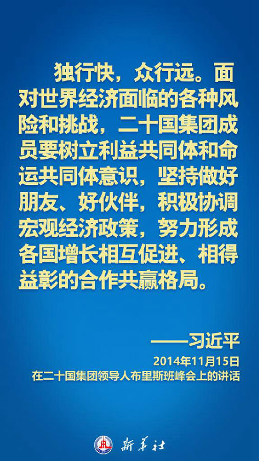 自2013年以来,习近平主席出席历次二十国集团峰会,为携手促进世界经济强劲、可持续、包容和平衡增长提供中国方案,为完善全球经济治理贡献中国智慧。