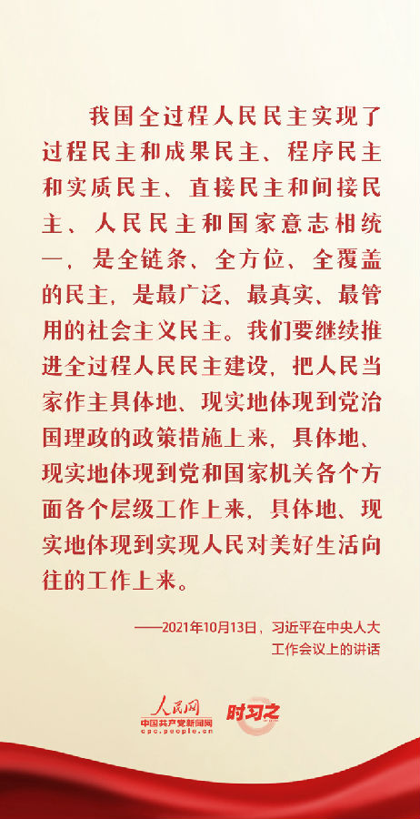 新时代新征程,在以习近平同志为核心的党中央坚强领导下,全过程人民民主形式不断丰富、渠道不断拓宽,展现更加蓬勃的生机。