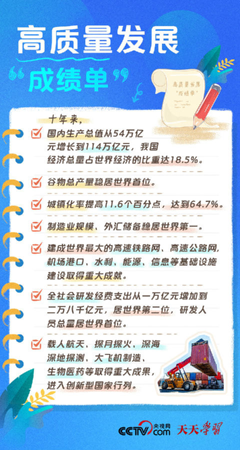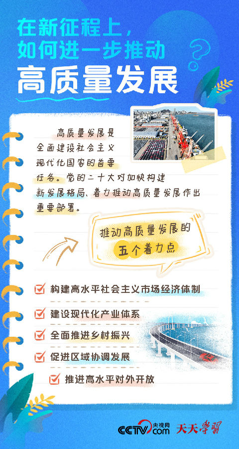 天天学习党的二十大报告指出,高质量发展是全面建设社会主义现代化国家的首要任务。发展是党执政兴国的第一要务。没有坚实的物质技术基础,就不可能全面建成社会主义现代化强国。必须完整、准确、全面贯彻新发展理念,坚持社会主义市场经济改革方向,坚持高水平对外开放,加快构建以国内大循环为主体、国内国际双循环相互促进的新发展格局。党的十八大以来,以习近平同志为核心的党中央提出并贯彻新发展理念,着力推进高质量发展,推动构建新发展格局,实施供给侧结构性改革,制定实施了一系列具有全局性意义的区域重大战略,我国经济实力实现历史性跃升。