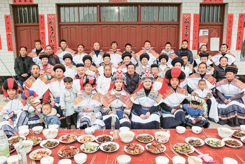 图为2021年2月11日,乌蒙山区腹地贵州省毕节市纳雍县维新镇坪子社区苗族村民马雍全家在年夜饭开始前照全家福。 新华社记者 欧东衢/摄