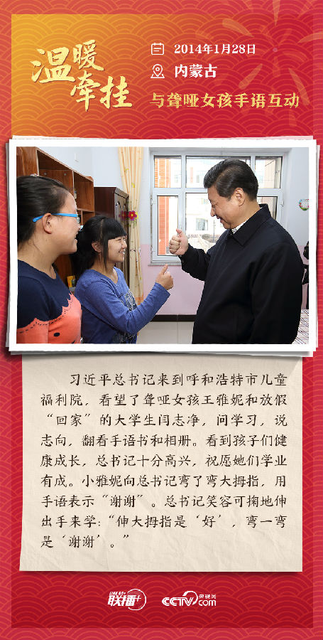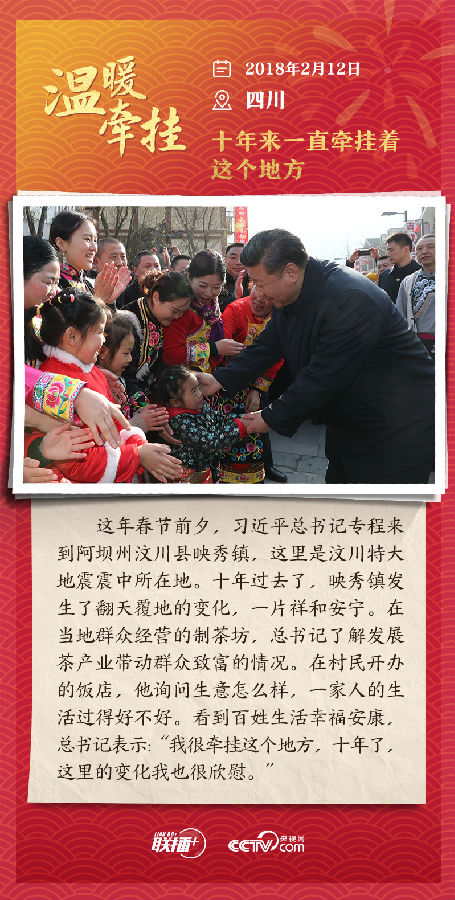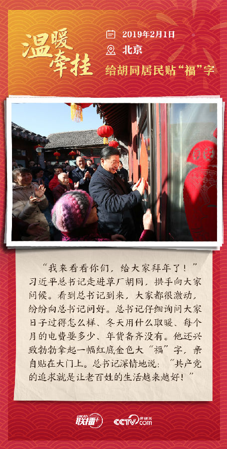 编者按:“大国之大,也有大国之重。千头万绪的事,说到底是千家万户的事。”从2013年起,每逢春节前夕,习近平总书记都会来到群众身边,拉家常、问冷暖,听民声、送祝福。央视网《联播+》特推出“温暖牵挂”系列,与您一同重温总书记与大家在一起的温暖故事,感受浓浓的领袖情怀。