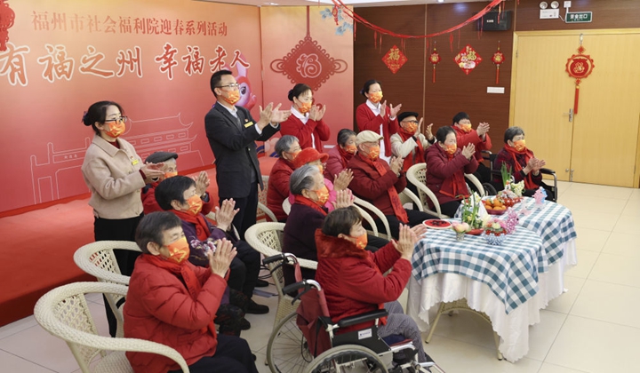 春节将至,绿树掩映的福建福州市社会福利院内张灯结彩,老年人手工制作的“兔”形工艺品、大红的“福”字、金鱼饰品琳琅满目,处处洋溢着喜庆祥和的节日气氛。