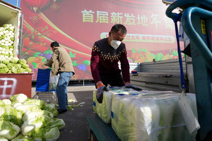 北京丰台区,新发地农产品批发市场一片热火朝天。玉田白菜、章丘大葱、孟定圆茄……来自全国各地的新鲜蔬菜堆满货箱,码得足有两米多高。叫卖声、攀谈声混杂着隆隆驶过的货车声,不绝于耳。