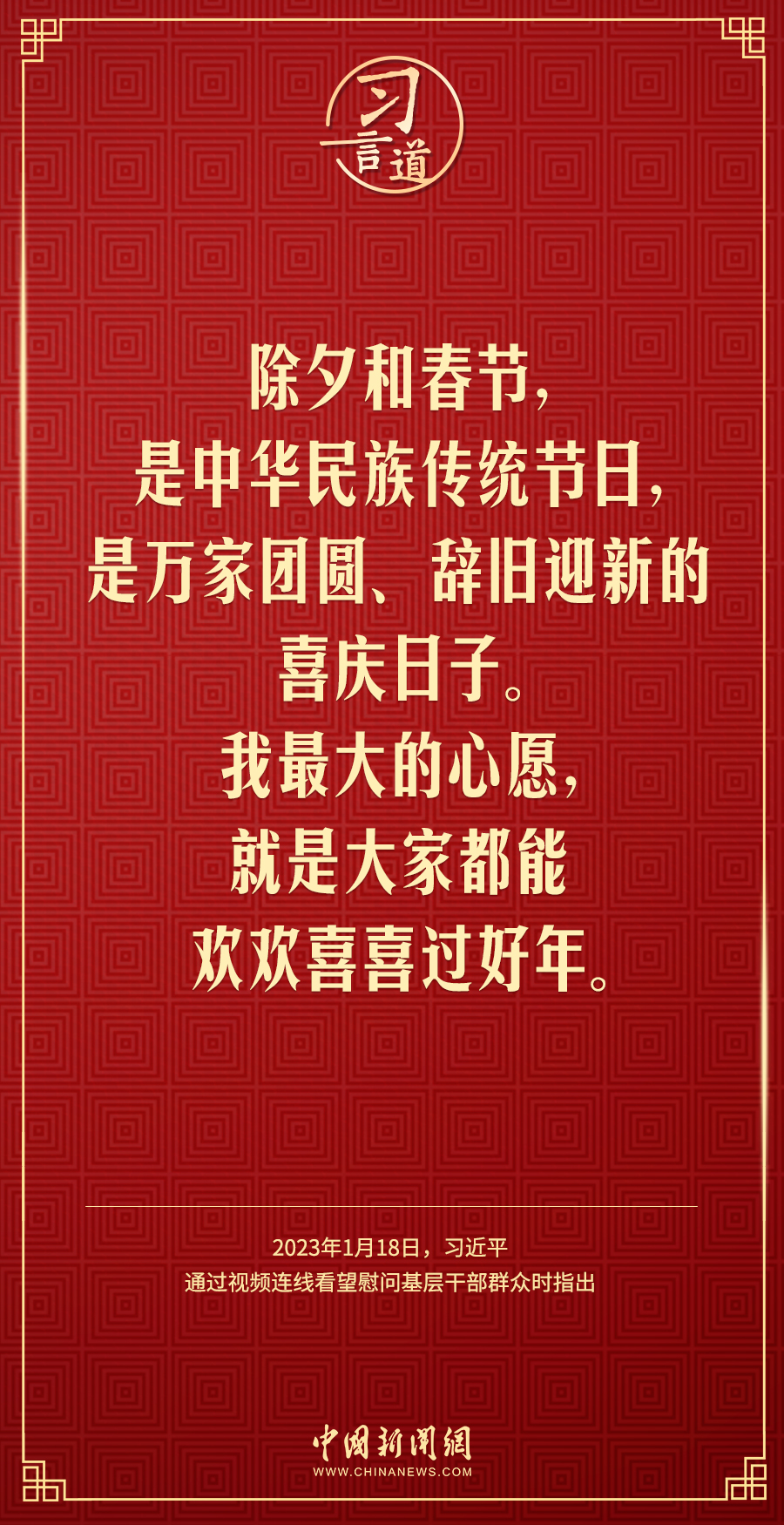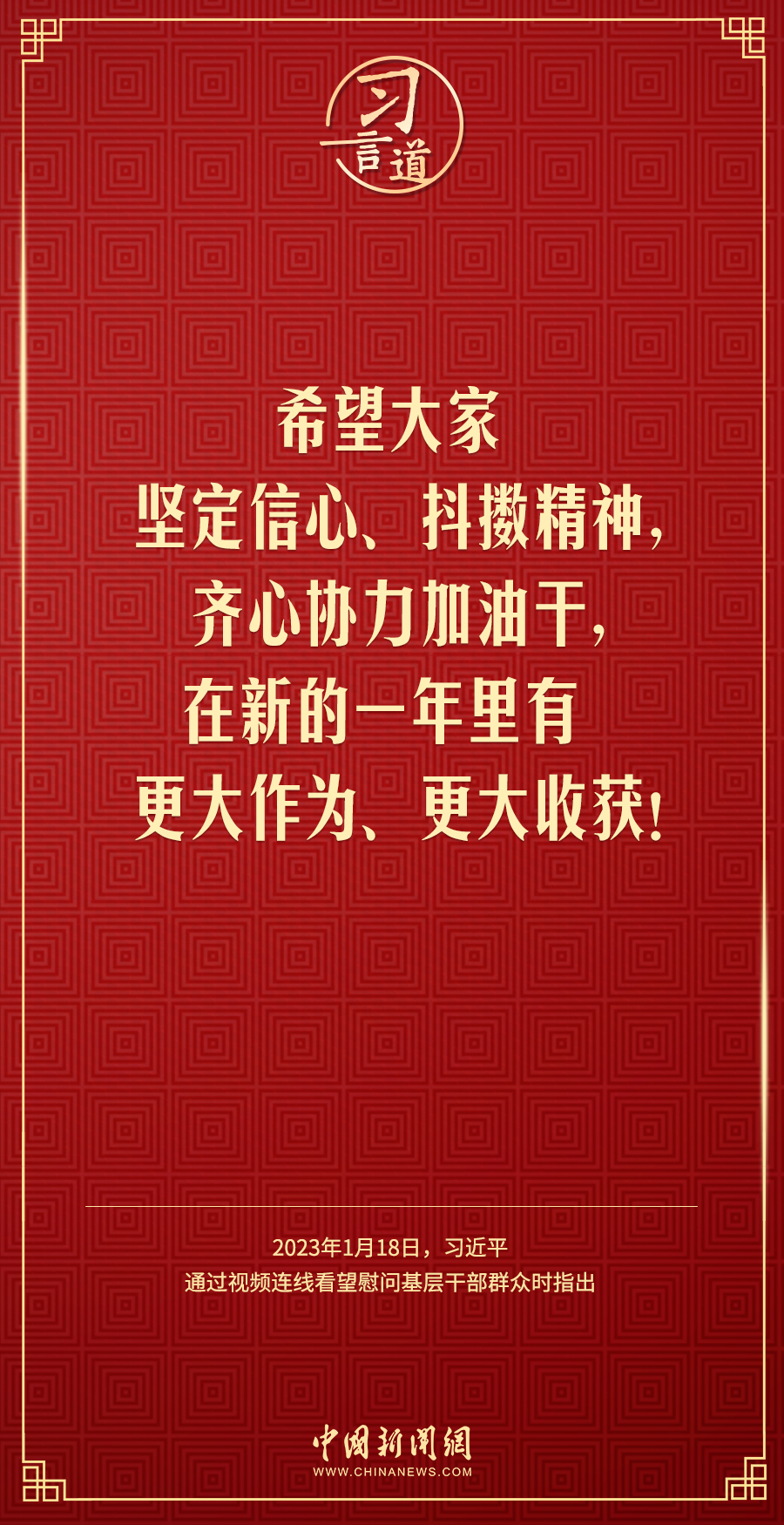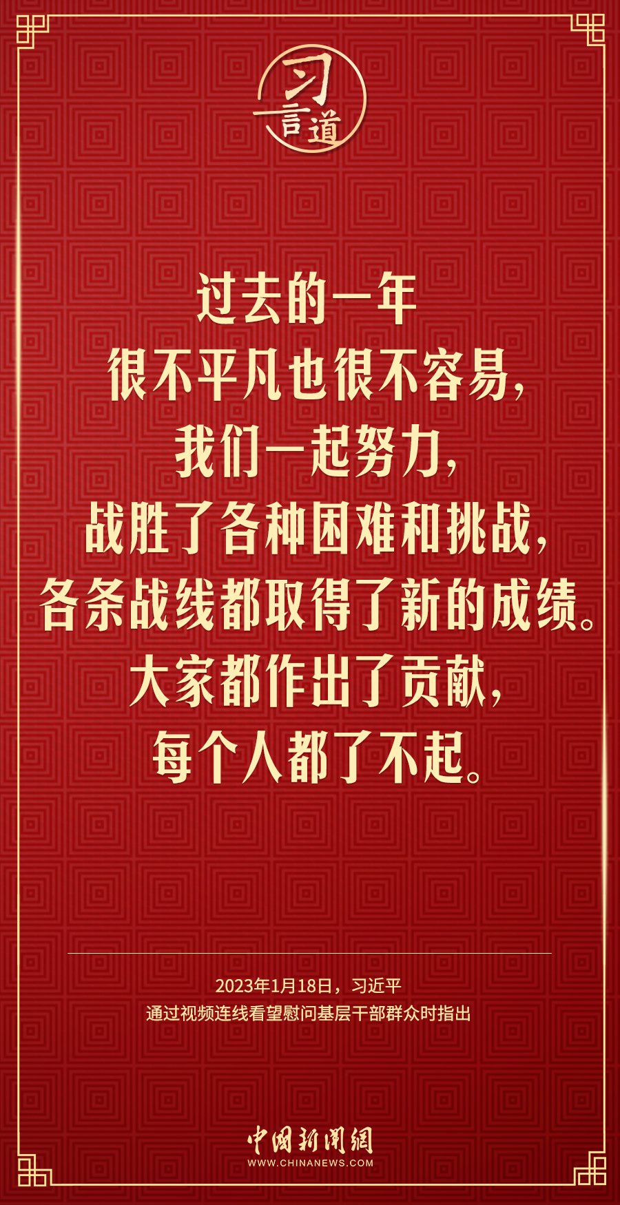 中华民族传统节日春节即将到来之际,1月18日,中共中央总书记、国家主席、中央军委主席习近平在人民大会堂东大厅通过视频连线看望慰问基层干部群众,他指出——