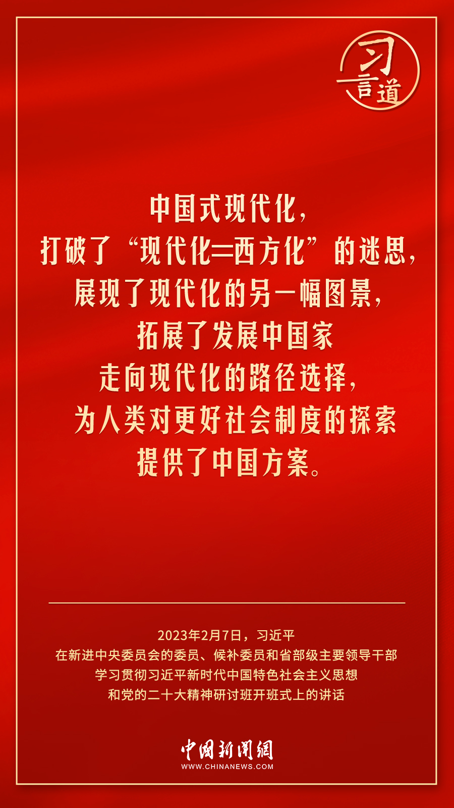 新进中央委员会的委员、候补委员和省部级主要领导干部学习贯彻习近平新时代中国特色社会主义思想和党的二十大精神研讨班2月7日上午在中央党校(国家行政学院)开班。中共中央总书记、国家主席、中央军委主席习近平在开班式上发表重要讲话,他强调——