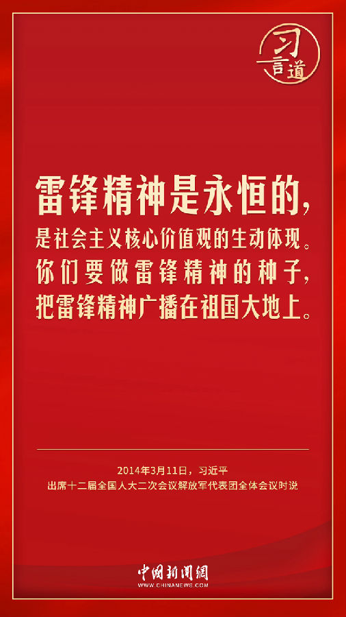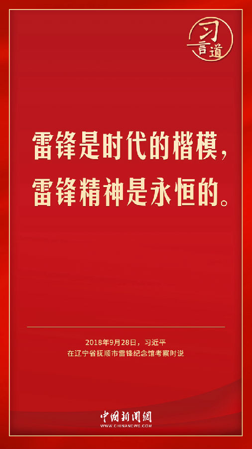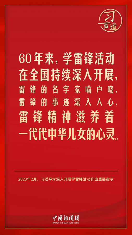 今年是毛泽东等老一辈革命家为雷锋同志题词60周年。党的十八大以来,习近平总书记就学习弘扬雷锋精神多次作出重要指示,他强调,无论时代如何变迁,雷锋精神永不过时。